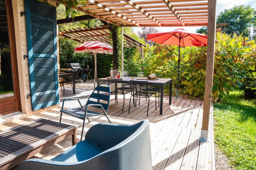 2 terrasses couvertes et de nombreux espaces de détente dans un jardin arboré et fleuri pour agrémenter votre séjour